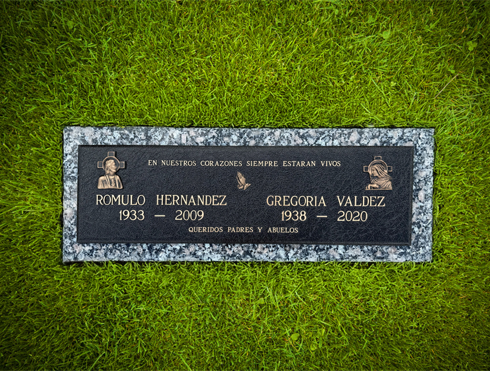 Companion bronze gravemarker for Hispanic couple