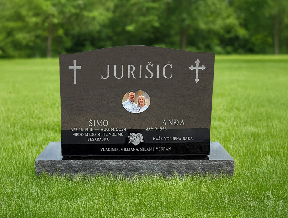 Black granite monument for two people